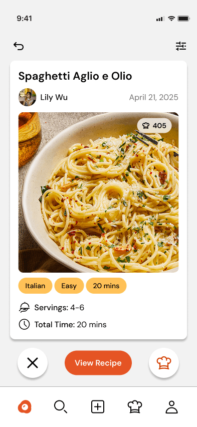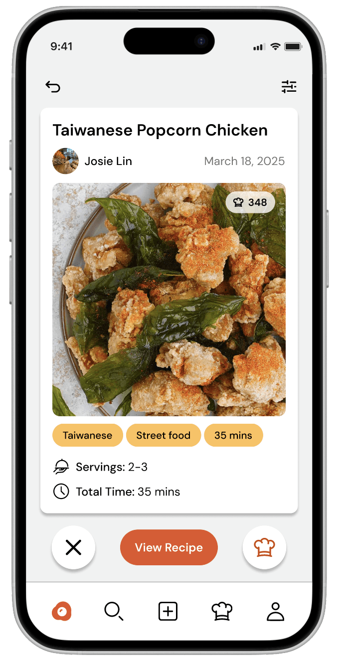Swipe through recipes curated to your preferences, experience, and needs!